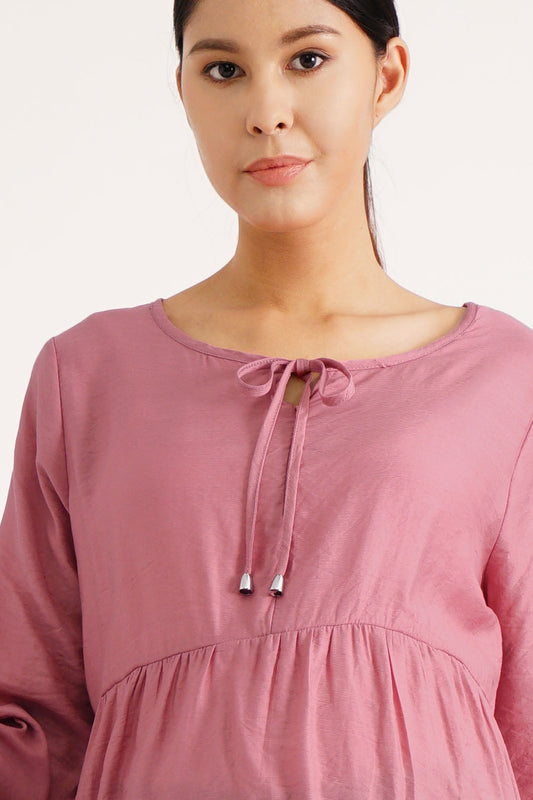 Drawstring Neckline Nursing Blouse