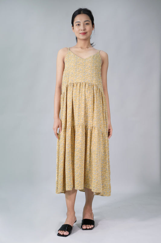 Floral Spaghetti Tiered Midi Dress