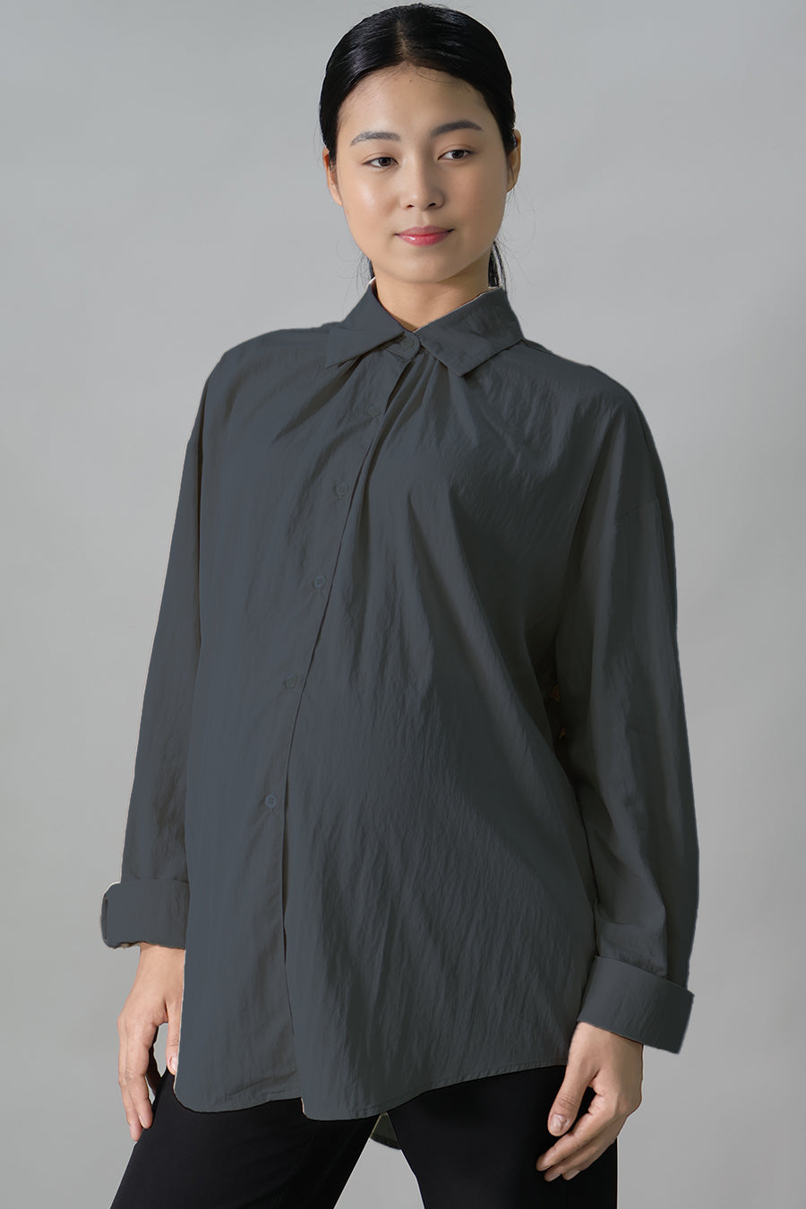 Designed to support you through pregnancy and into motherhood, this long sleeve maternity shirt is nursing-friendly with a practical button-up front for easy breastfeeding access. Made from lightweight polyester that drapes softly without clinging, it offers a relaxed fit that accommodates a growing bump and remains flattering after pregnancy. Modest and versatile, this shirt pairs effortlessly with long pants or skirts — perfect for everyday wear during pregnancy, nursing, and beyond.